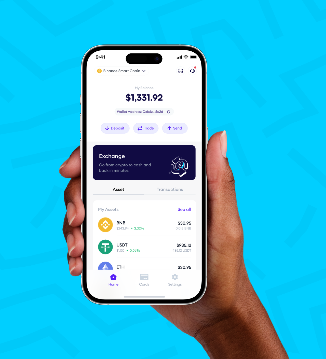 The simplest and most secure self-custody wallet to convert digital assets to local currency in minutes.
