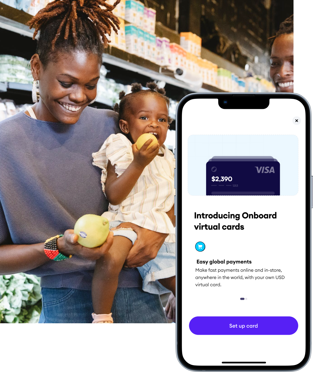 Spend crypto as easily as cash in your bank account with our Onboard Virtual Card. Make online and in-store payments in 160+ Countries.