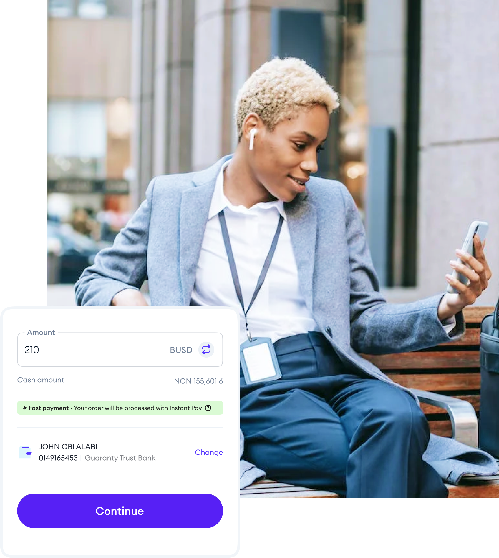 Instant Pay helps you skip the multiple steps and waiting times, and complete crypto to cash transactions in seconds.