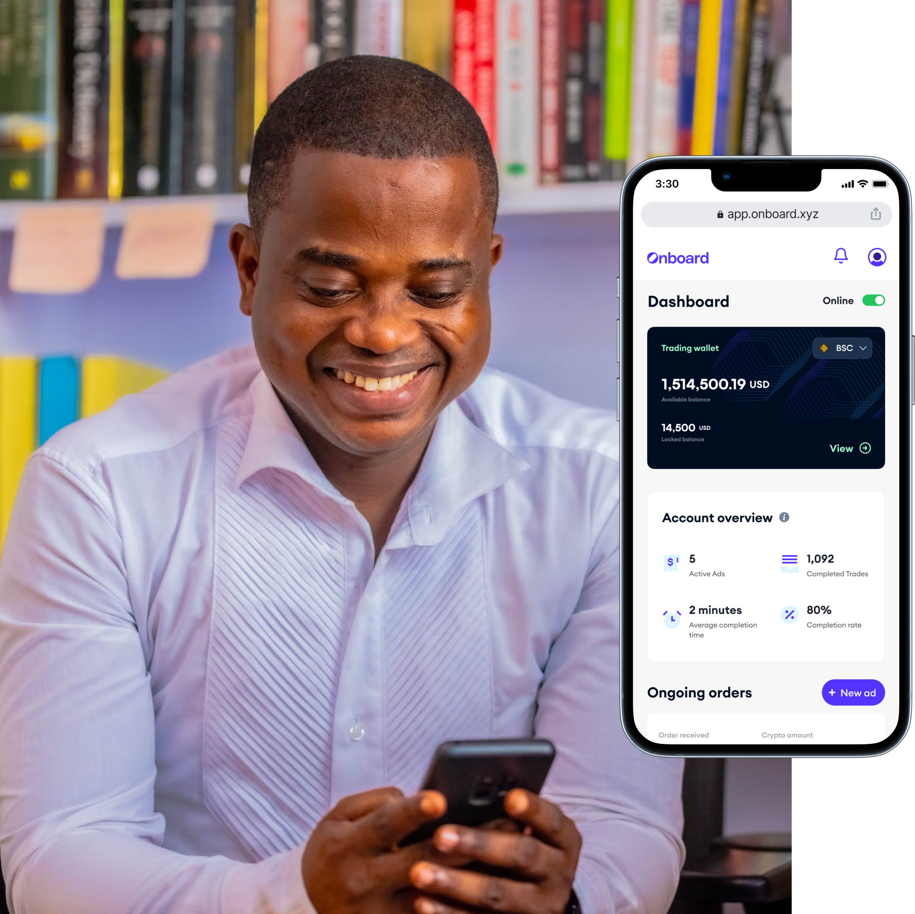 The Onboard advantage is how, while creating your Ad, you’re able to set your price (within a range of market price) and the terms of trading that work for you.